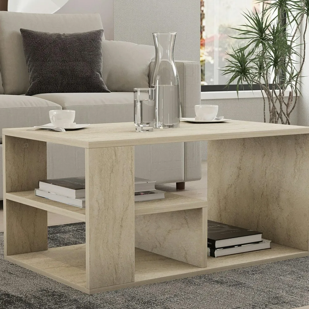 Tables Basses Gigognes|Tables Basses Rondes|MARFA Table basse moderne effet travertin – 2 hauteurs