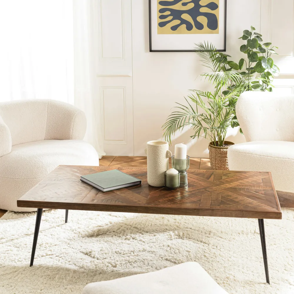 Tables Basses Rondes|KORKAI Table basse ronde bois recyclé motif éventail 80 cm