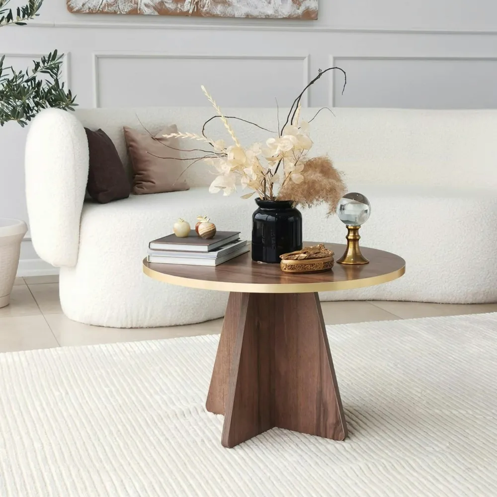 Tables Basses Rondes|MARFA Table basse ronde effet noyer & pieds trapèze
