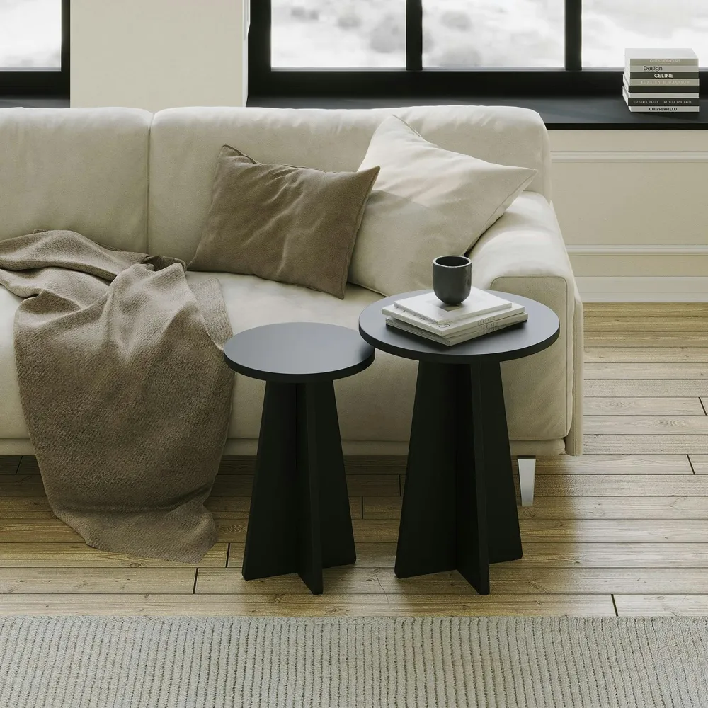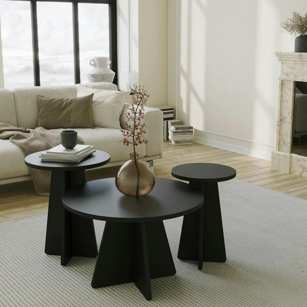 Tables Basses Rondes|Tables Basses Gigognes|MARFA Table basse gigogne noire pieds trapèze – 3 pièces