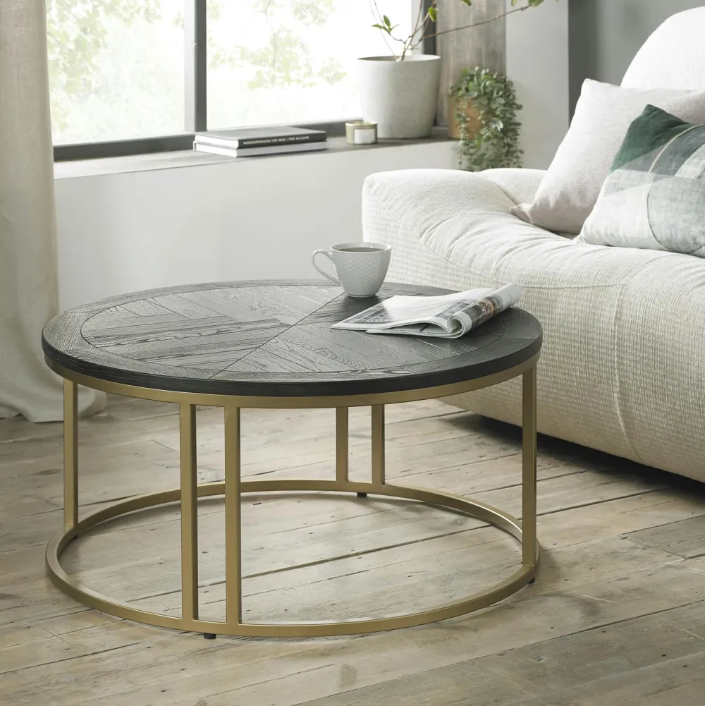 Tables Basses Rondes|VALLEY Table basse noire ronde en marqueterie de bois