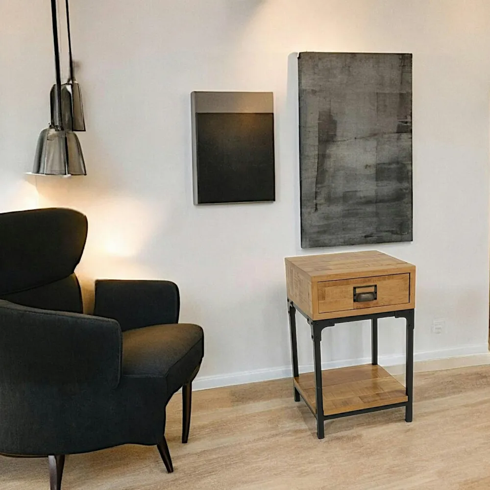 Tables De Chevet Industrielles|Loft / Loft Colors Table de Chevet / Bout de Canapé 1 tiroir, 1 plateau bas en Hévéa recyclé naturel et métal 35x35x55cm LOFT