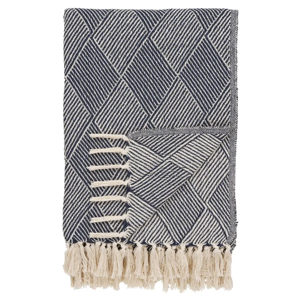 Textile·Plaids / Jetés|FALLON Jeté de canapé bleu marine motif losanges – 130×180 cm