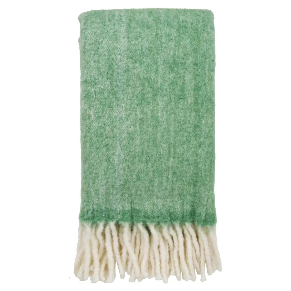 Textile·Plaids / Jetés|FALLON Plaid canapé vert à longues franges, 130×170 cm