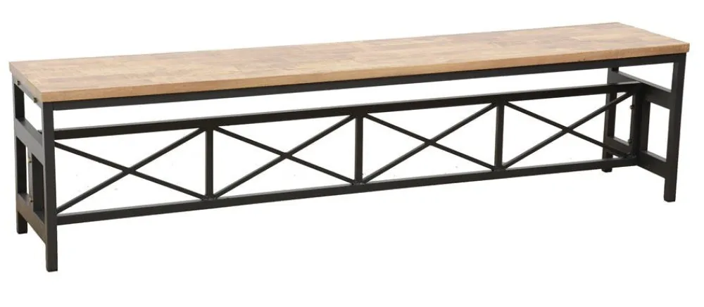 Bancs Industriels|Loft / Loft Colors Banc en Hévéa recyclé naturel et pieds métal avec croisillons 180x36x45cm LOFT