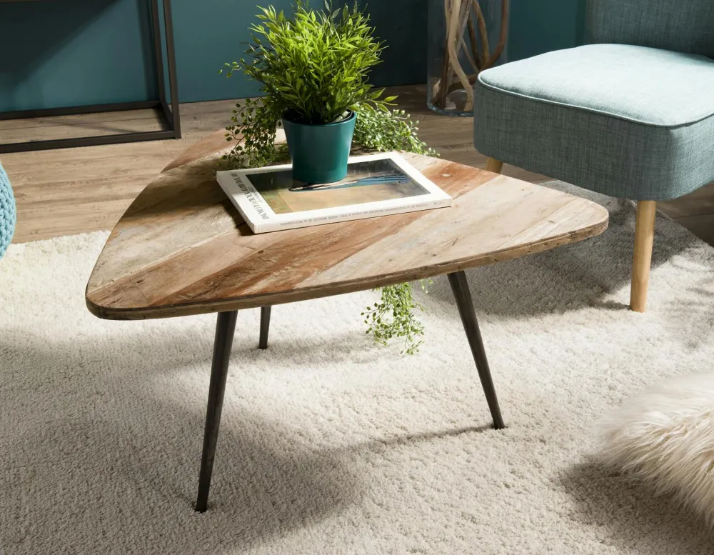 Bouts De Canapé En Métal|Bouts De Canapé En Bois|Swing Table d’appoint triangulaire teck recyclé GM