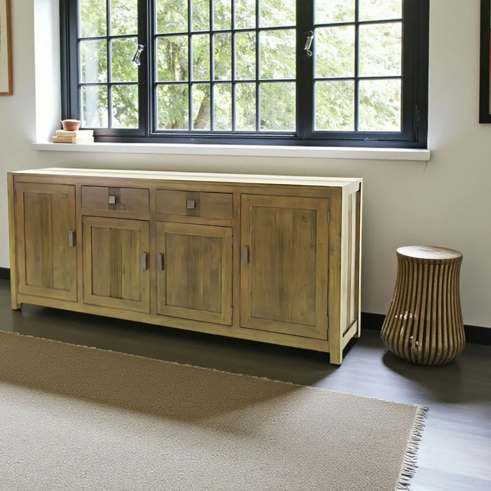 Buffets En Bois|Buffets En Bois|Tessa Buffet Enfilade Hévéa 4 portes, 4 tiroirs 200x50x100cm