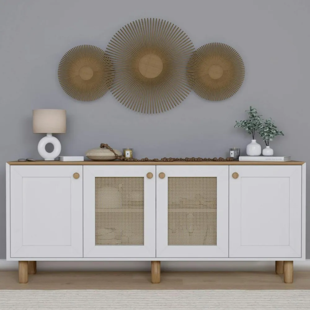 Buffets Contemporains|Buffets Contemporains|VAREN Buffet salle à manger blanc 4 portes à détail cadre