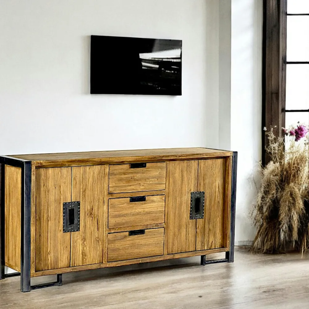Buffets Industriels|Buffets Industriels|Canada Enfilade en teck naturel 4 portes 3 tiroirs 186x88x45cm