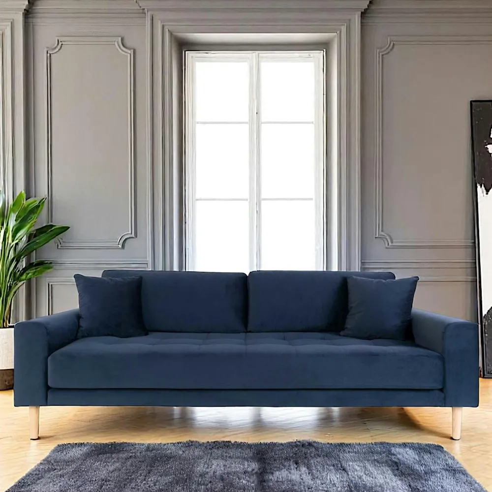 Canapés 3 Places|Canapés En Tissu|AMSTERDAM Canapé 3 places bleu nuit – velours,