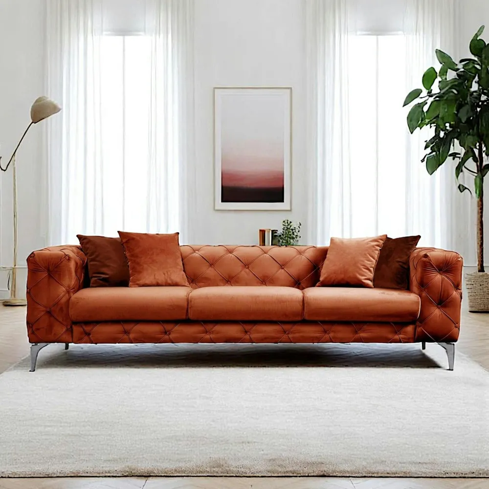 Canapés 3 Places|Canapés En Tissu|DOVER Canapé 3 places rouille en velours capitonné