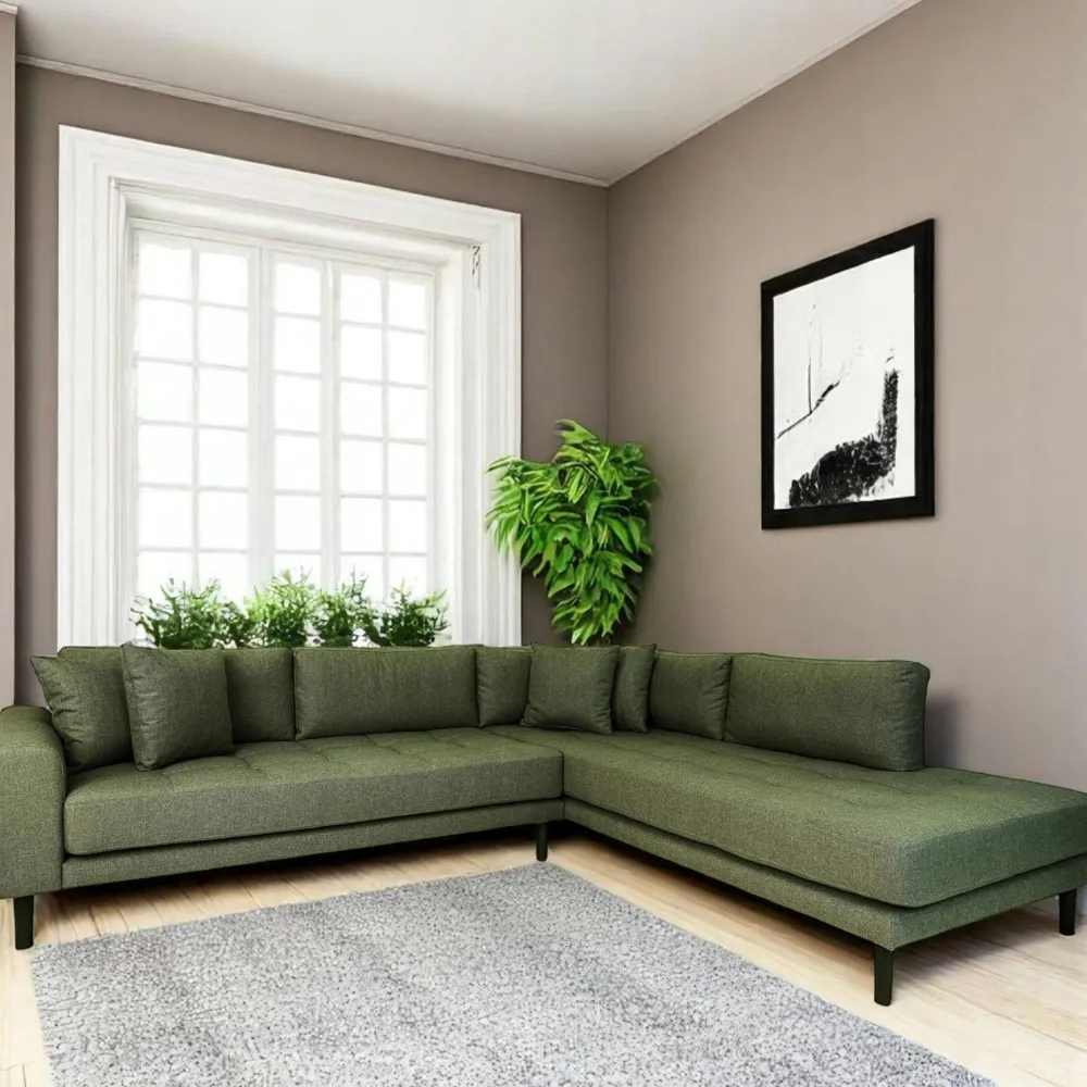 Canapés D’Angle|Canapés 3 Places|AMSTERDAM Canapé d’angle vert nature – côté droit, 257 cm