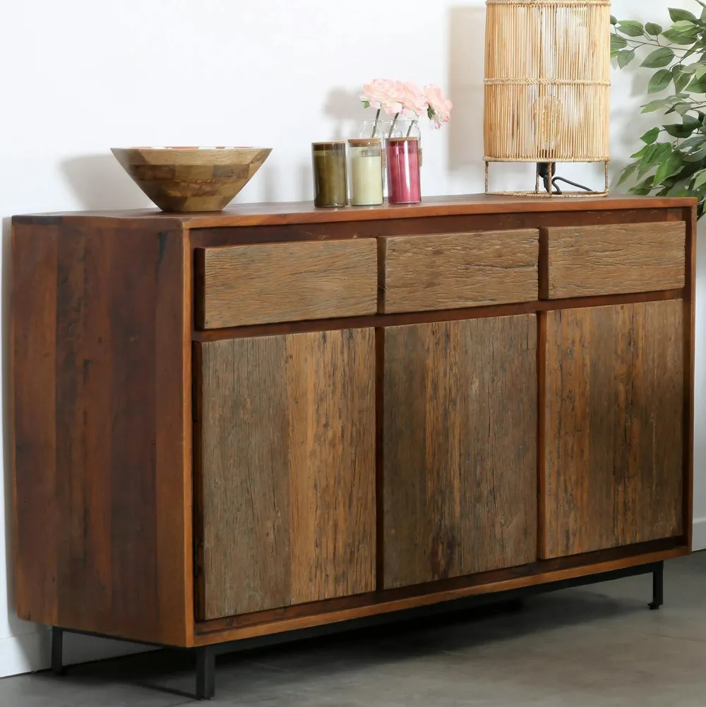 Buffets En Bois|Buffets En Bois|Tessa Buffet Enfilade Hévéa 4 portes, 4 tiroirs 200x50x100cm