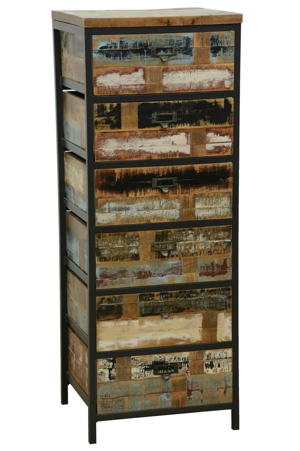 Chiffonnier Industriel|Loft / Loft Colors Chiffonnier 6 tiroirs en Hévéa recyclé coloré et métal 45x40x120cm LOFT COLORS