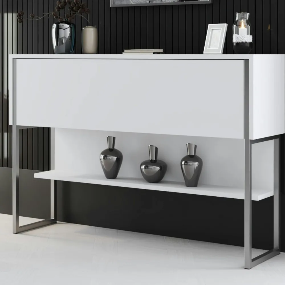 Consoles En Bois|Consoles En Bois|JENA Console d’entrée blanche design avec grand rangement