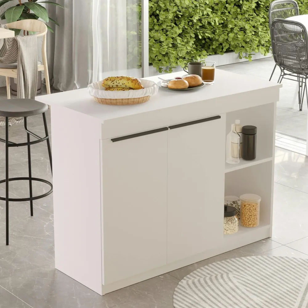 Meubles De Salle À Manger·Meubles Bar|MARFA Bar séparation cuisine ouverte blanc, 2 portes
