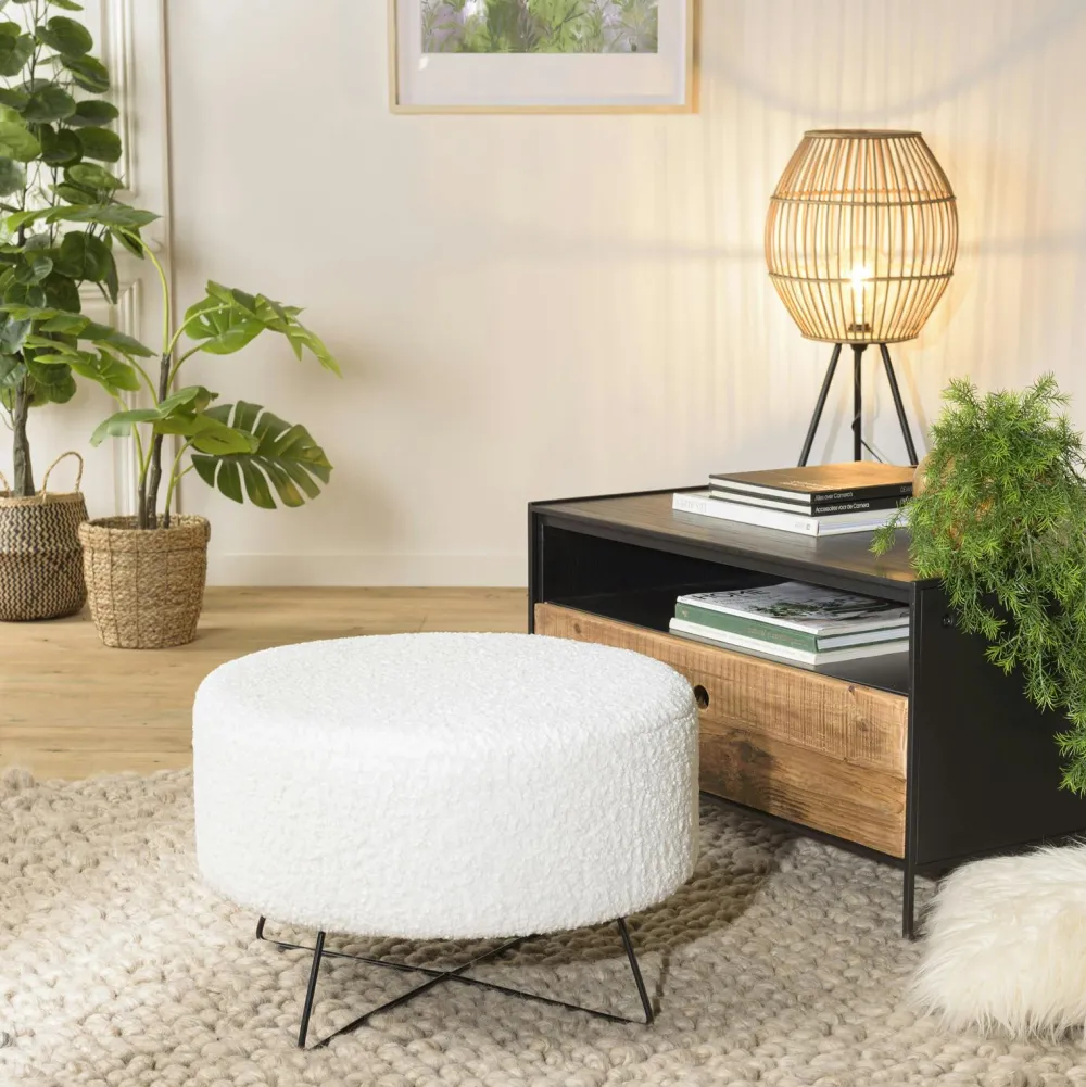 Meubles De Salon·Poufs|Chaises Bouclettes|TIM Pouf de salon blanc tissu bouclettes