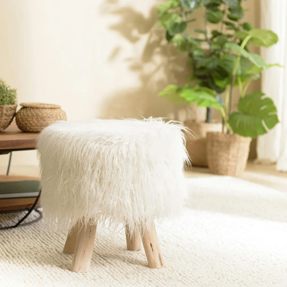 Meubles De Salon·Poufs|Meubles De Salle À Manger·Tabourets|TIM Tabouret rond effet fourrure et pieds bois