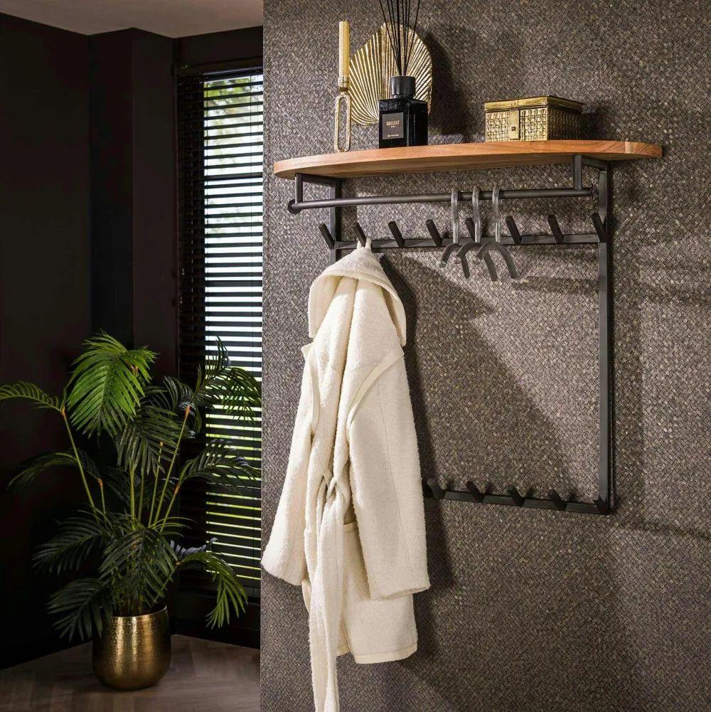 Meubles D’Entrée·Portemanteaux|Portemanteaux Industriels|Melbourne Portemanteau mural 8 accroches 1 étagère ronde en bois