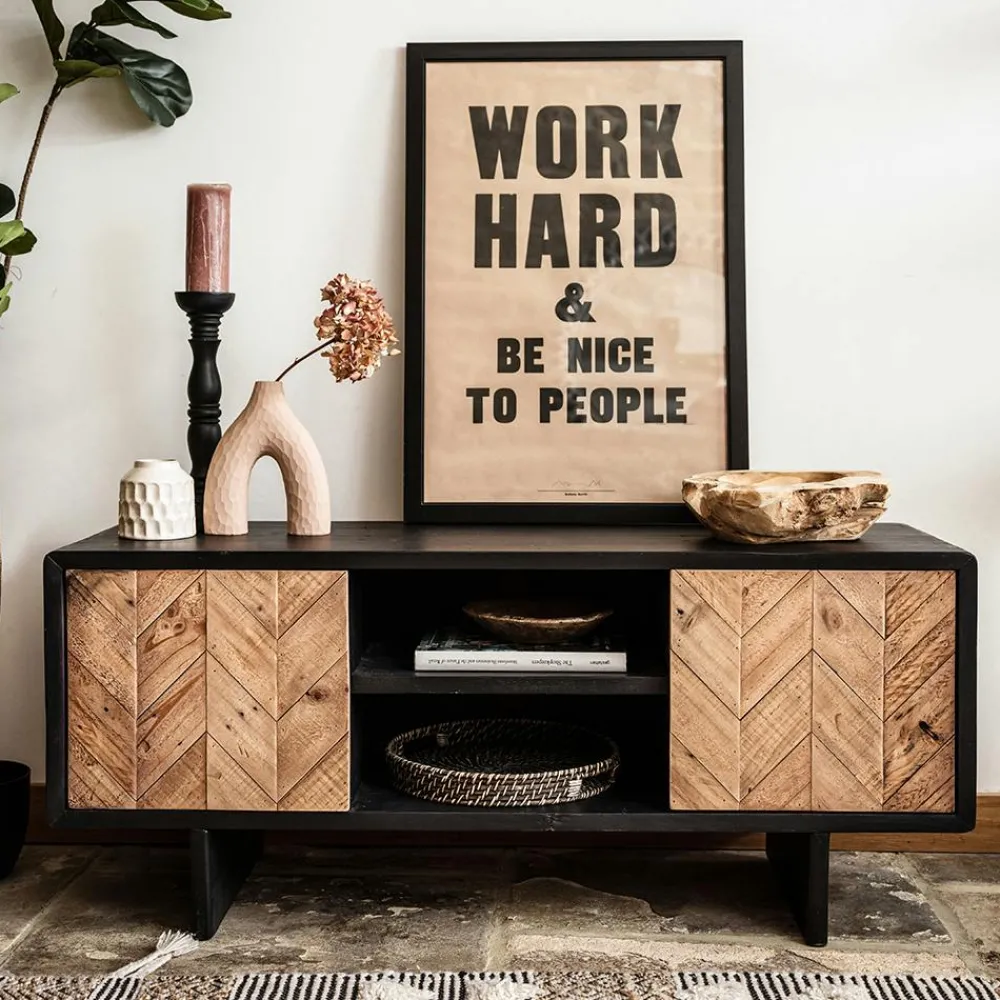Meubles Tv En Bois|Meubles Tv Vintage|FAGA Meuble tv avec rangement en bois recyclé FSC motif chevron