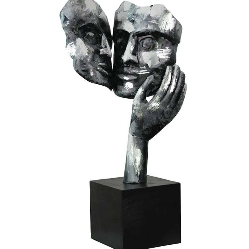 Objets Décoration·Figurines / Statues| Sculpture « En Secreto » visage et main gris sur socle H57cm