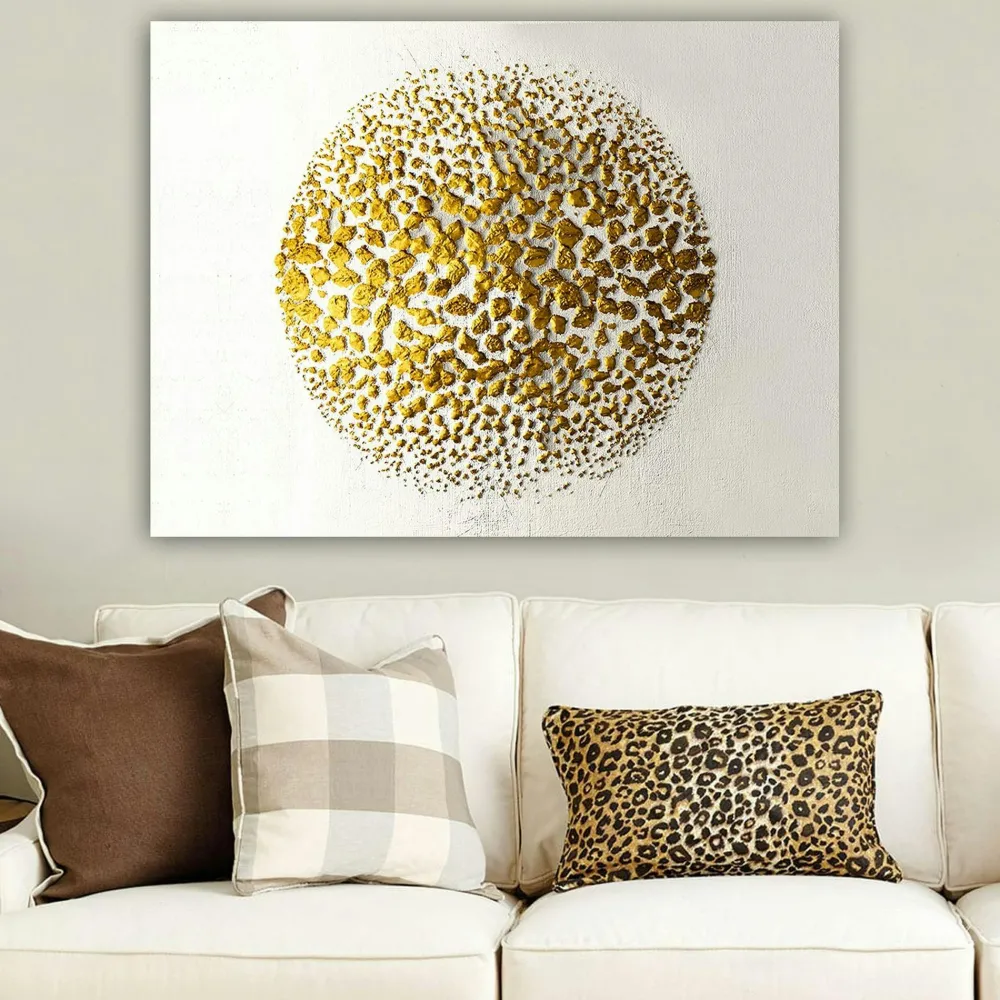 Tableaux / Toiles| Tableau abstrait blanc et or – sphère texturée