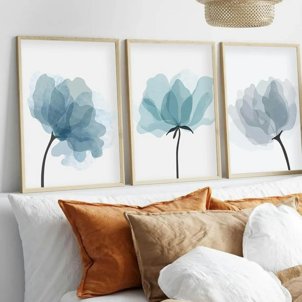 Tableaux / Toiles| Tableau floral aquarelle bleu pastel – lot de 3
