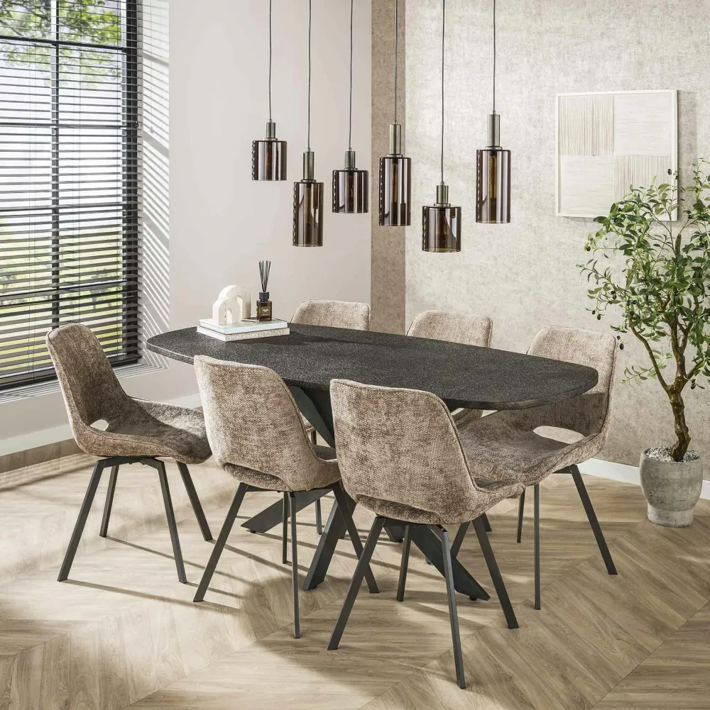 Tables À Manger Industrielles|Tables À Manger En Bois|RALF Table à manger industrielle gris foncé texturée 180 cm