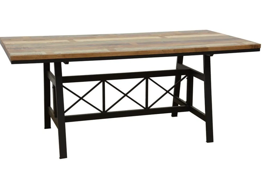 Tables À Manger Industrielles|Tables À Manger Rectangulaires|Loft / Loft Colors Table de Repas plateau en Hévéa recyclé coloré et pieds métal avec croisillons 180x90x76cm LOFT COLORS