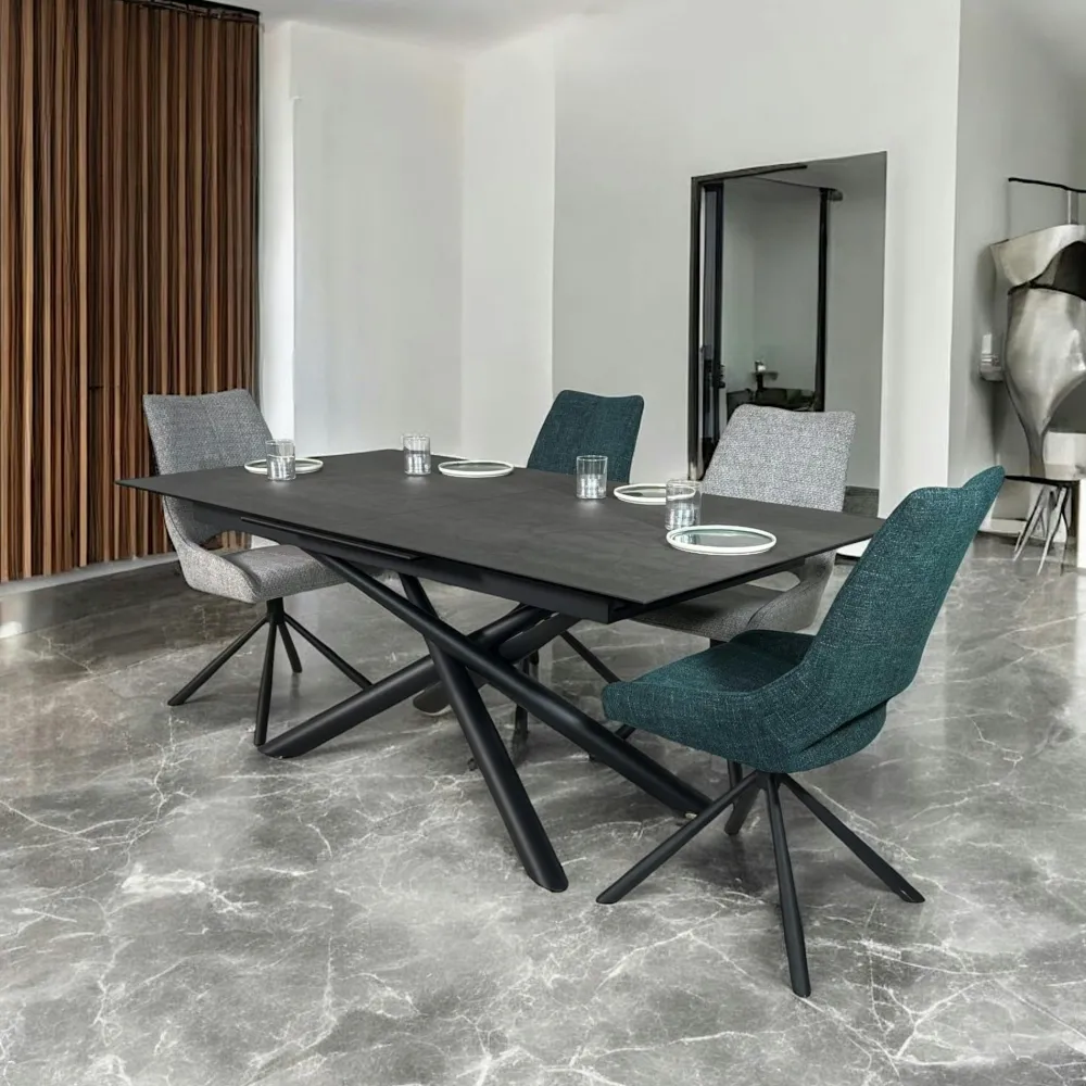 Tables À Manger Rectangulaires|Tables À Manger En Céramique|LOMBARDIE Table en céramique grise avec pied mikado 180-240 cm