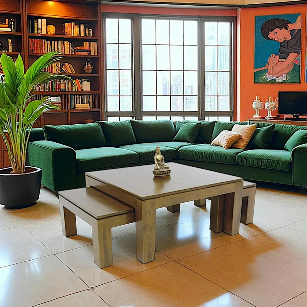 Tables Basses Carrées|Helena Ensemble de 3 tables basses hévéa