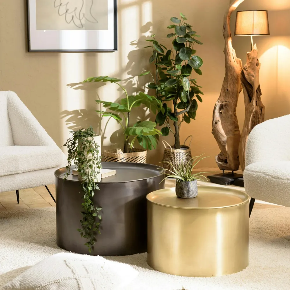 Tables Basses Design|Tables Basses Gigognes|ZALA Table basse gigogne ronde en métal gris / doré (lot de 2)