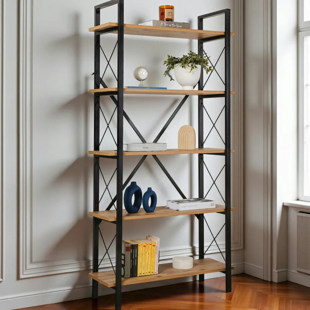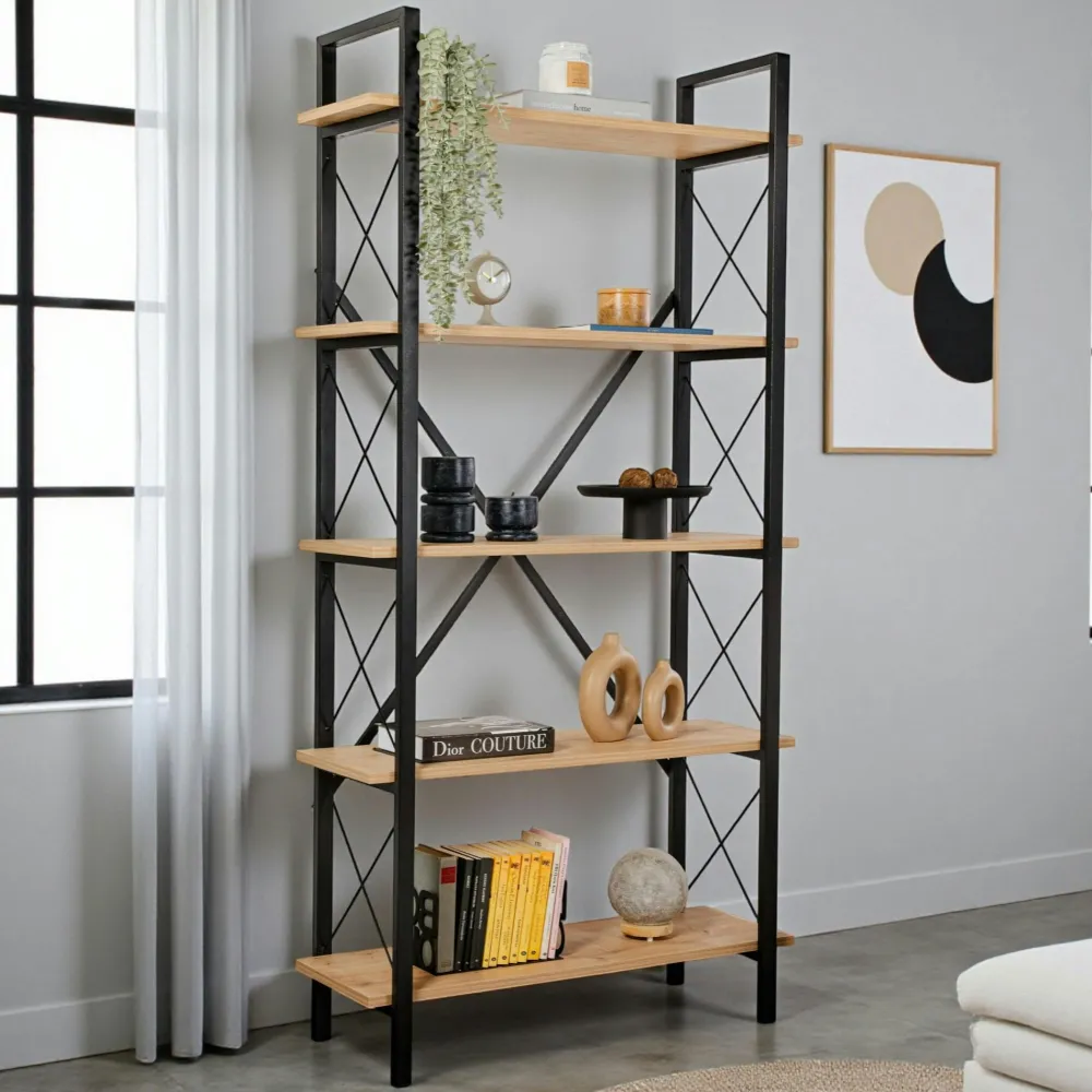 | Composition : | MDF recouvert de mélamine effet chêne – Métal |
