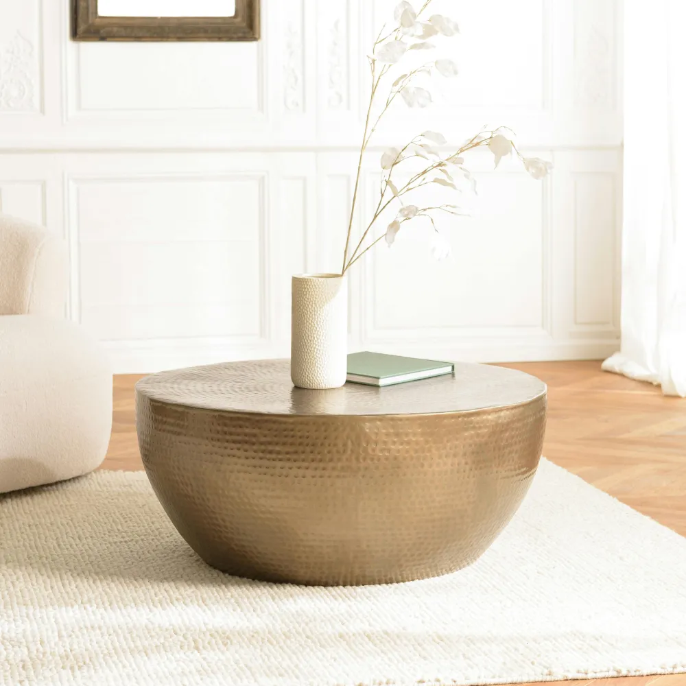 Tables Basses Rondes|ZALA Table basse métal doré antique forme coupelle