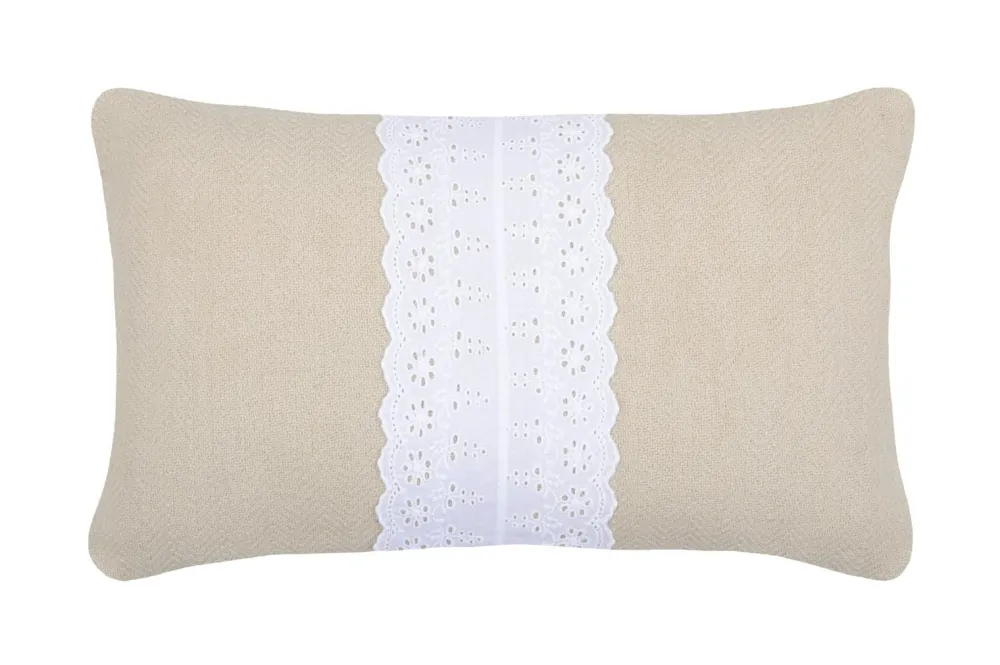 Univers Déco·Classique Chic|Textile·Coussins| Coussin déco couleur lin et vert avec dentelle blanche 30x50cm MUMMY